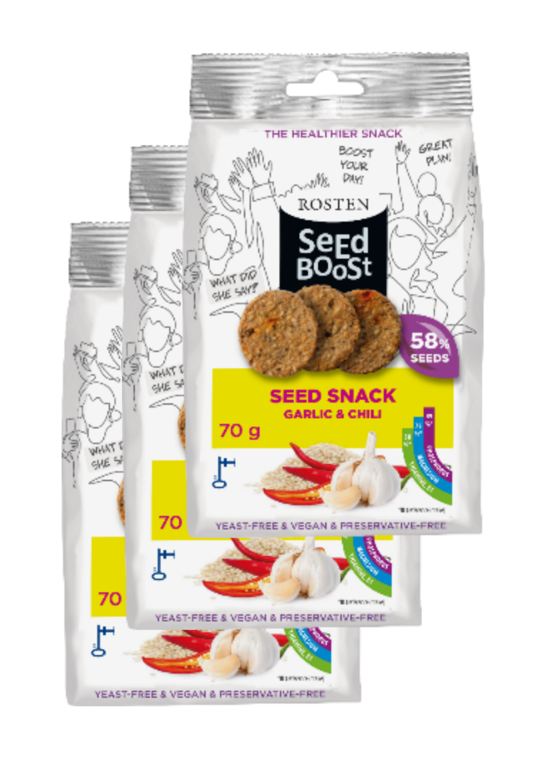 SeedBoost küüslaugu ja tšilliga on vürtsikas ja krõbe seemnepõhine snäkk, mis ühendab rikkalikult toitaineid sisaldavad seemned ning julge maitseprofiili.