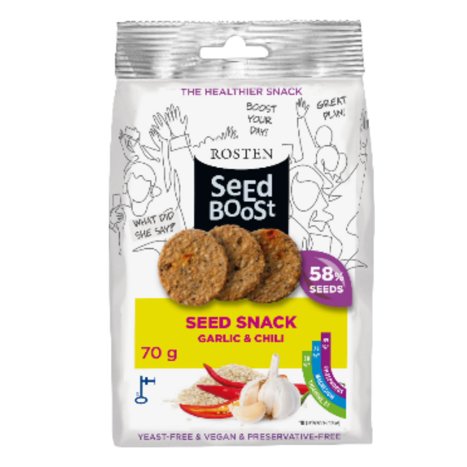 SeedBoost küüslaugu ja tšilliga on vürtsikas ja krõbe seemnepõhine snäkk, mis ühendab rikkalikult toitaineid sisaldavad seemned ning julge maitseprofiili.
